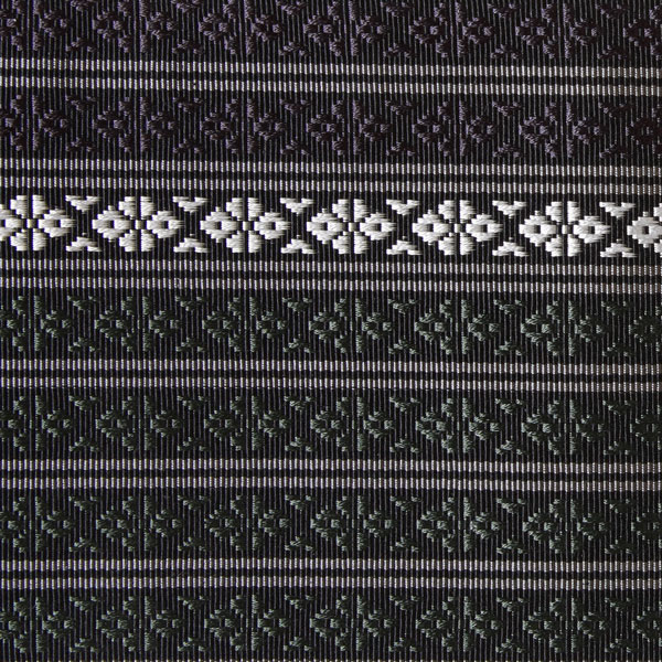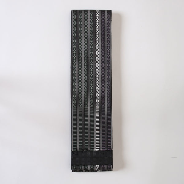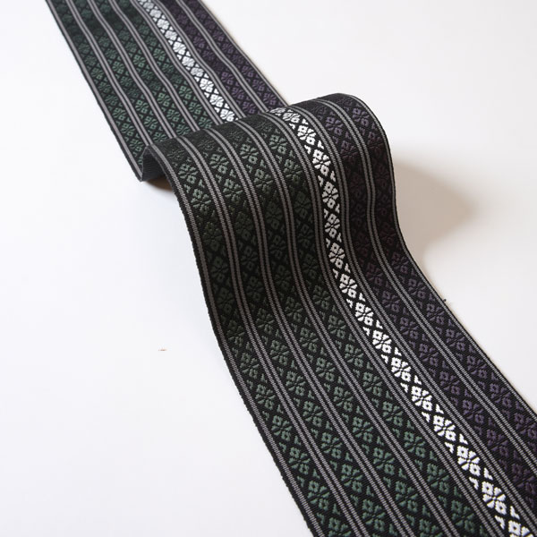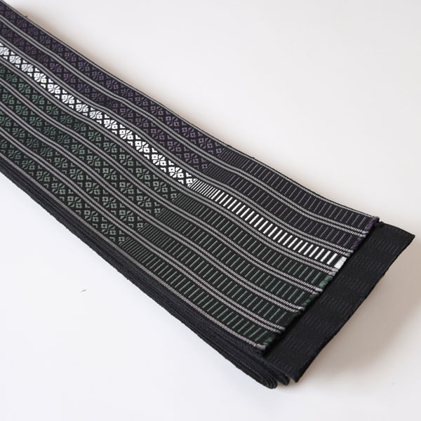 緑、白、紫で独特の縞模様を織り出した、おしゃれな一本。