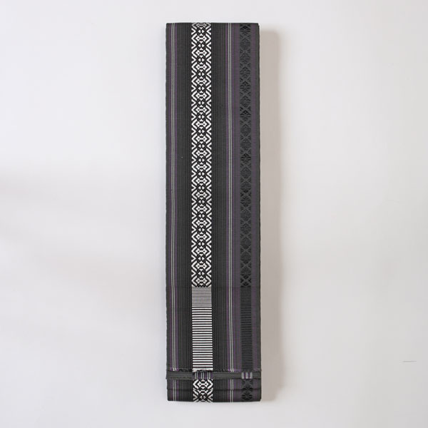 【日本製】角帯 正絹博多本筑 リバーシブル 縞 黒