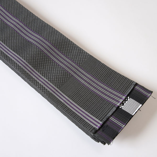 張りのある生地感と一度結んだら緩まない締め心地の良さが博多織の特徴です。きめが細かく美しい光沢のある博多織は、着物ファンに長く愛されています。