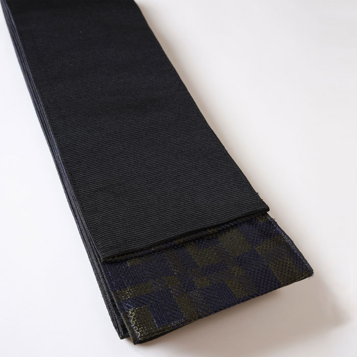 裏面はシンプルな黒の無地。着物の柄を選ばず、すっきりと落ち着いた着姿にまとめたい時に活躍します。