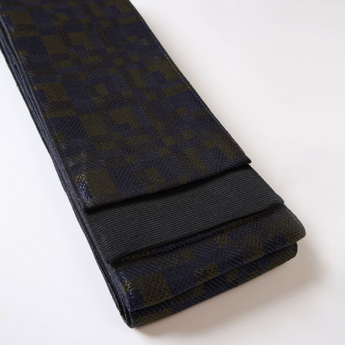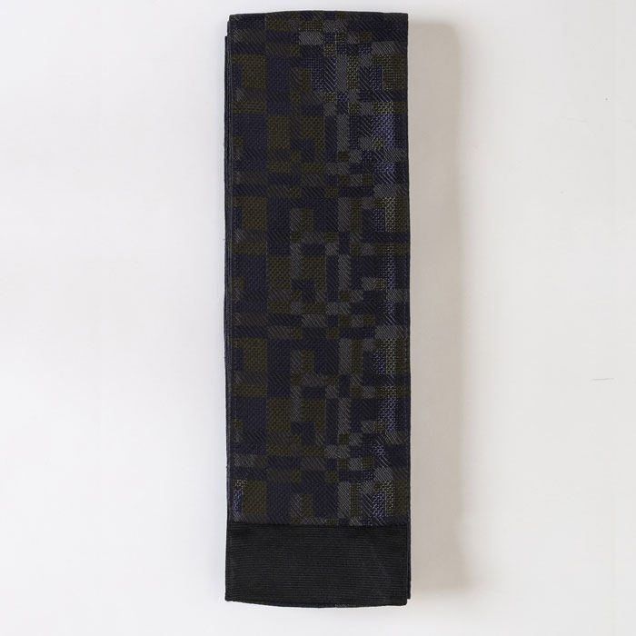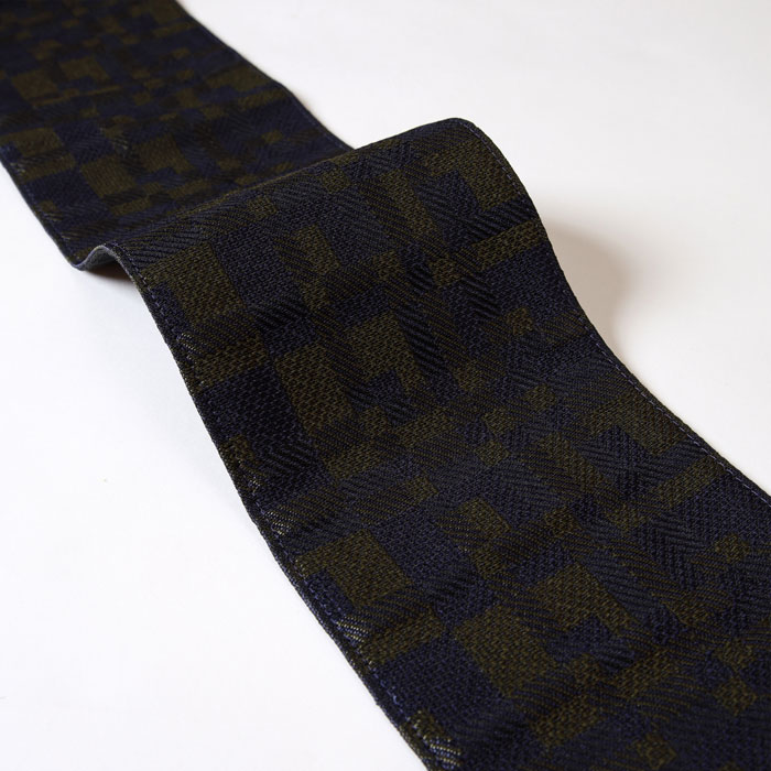 コメント 表面は濃紺とグリーンを組み合わせ、タイルを敷き詰めたような幾何学柄を表現。モダンで洗練された印象があり、コーディネートのアクセントとして存在感を発揮します。