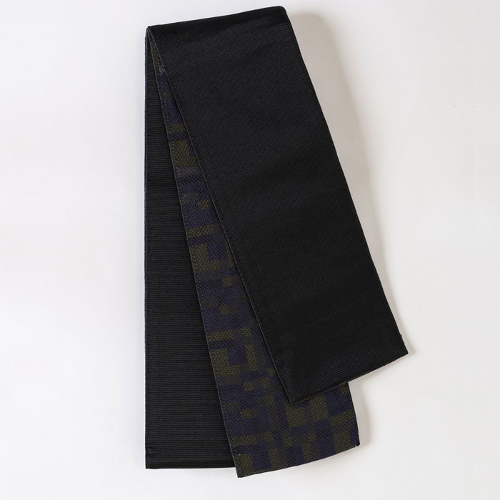 【日本製】角帯 リバーシブル タイル/無地 ブラック